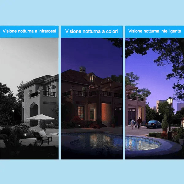 Configurate 3 luci infrarosse ad ampio angolo e 4 luci led luminose per poter ottenere una visione notturna colorata anche nell’oscurità.