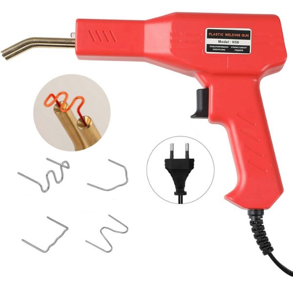 Insieme allo strumento di saldatura, la confezione comprende anche una pinza, un coltello e 200 graffette di varie dimensioni in un pratico sacchetto. Queste graffette sono progettate per essere durevoli e resistenti sia al calore che all’acqua, garantendo una lunga durata.