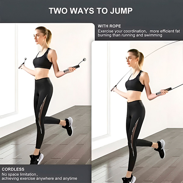 Passa alla modalità senza corda per allenamenti sicuri e silenziosi in spazi ridotti come l’ufficio, il soggiorno o all’aperto.
