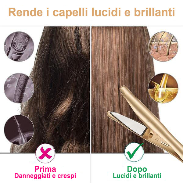 Il metodo di riscaldamento PTC e la piastra in titanio donano un aspetto più lucido e setoso in minor tempo ed eliminano l’effetto frizz per un tempo più lungo con meno danni. Adatto a qualsiasi tipo di capello.